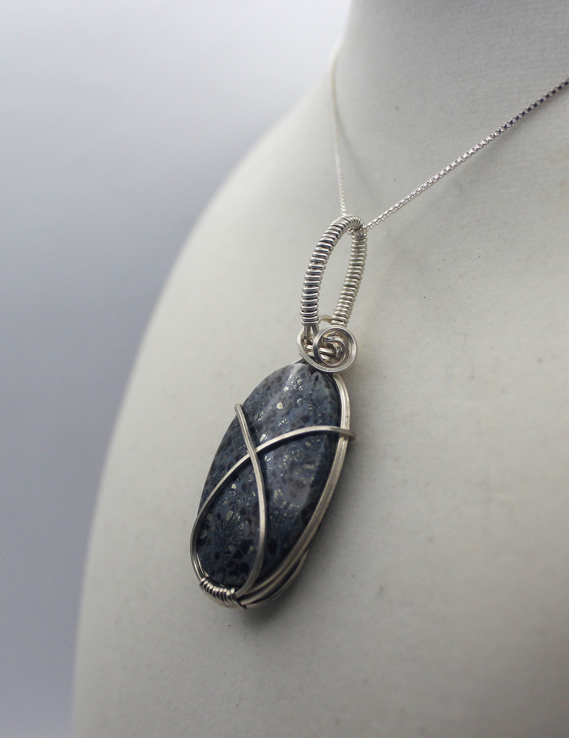 This handcrafted pendant features a genuine Black Marcasite cabochon wrapped in bright, tarnish-resistant Argentium Silver. Each wire swirl is shaped with intention, creating an elegant, one-of-a-kind design that highlights the stone’s metallic shimmer. Black Marcasite is often associated with clarity, willpower, and transformation—believed to help strengthen determination while grounding scattered energy. Paired with the purity of Argentium Silver, this piece carries both beauty and energetic stability.