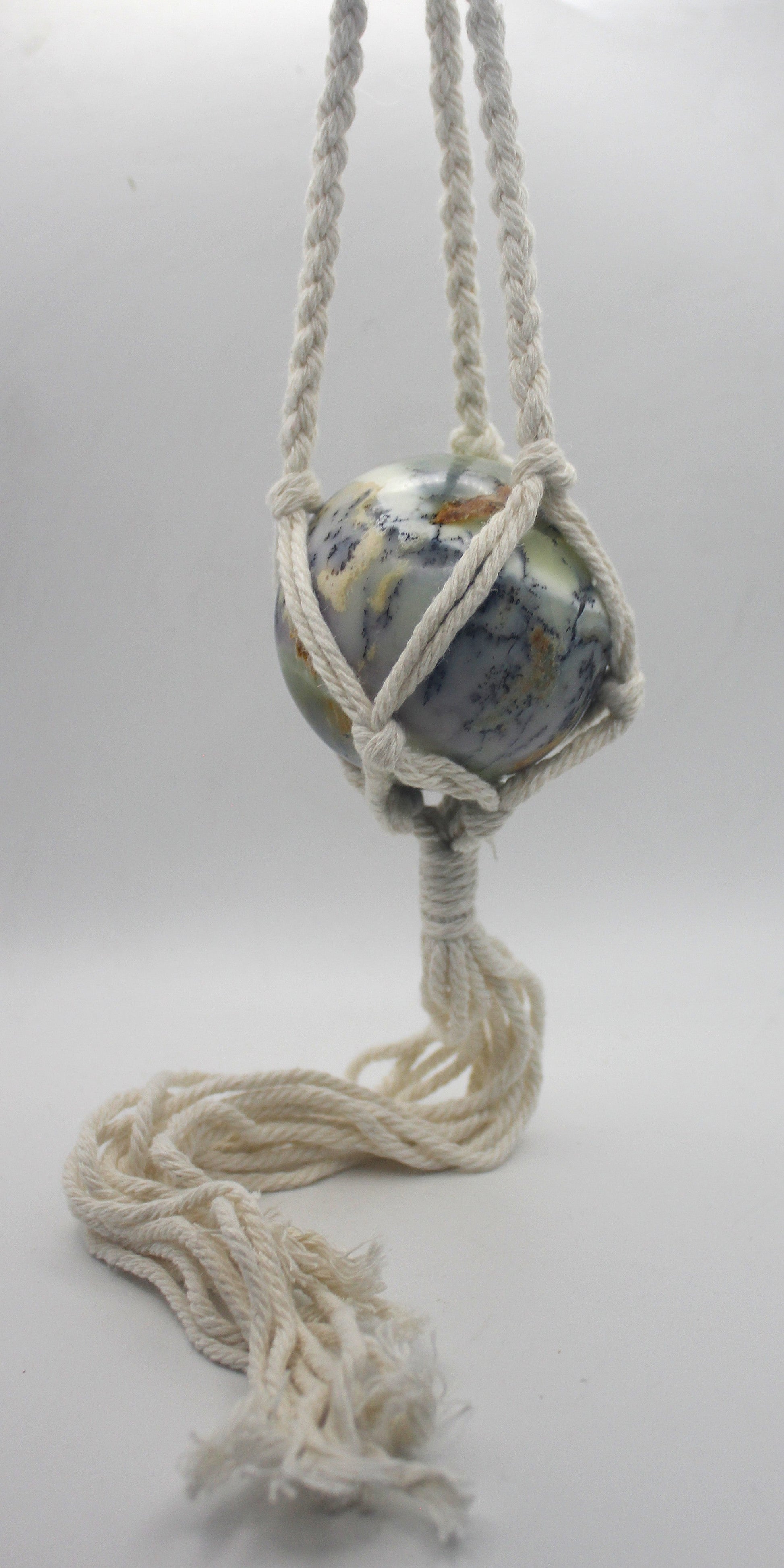 Elevate your space with this beautifully hand-tied macramé sphere hanger, crafted from soft natural cotton rope. Designed to cradle your favorite crystal sphere, this hanger brings earthy texture and boho charm to any room, altar, or sacred space.