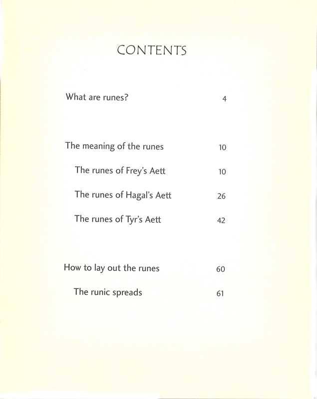 This handy guide to the secrets of rune-reading, an ancient predictive art, teaches you how to lay out runes and interpret them instantly. Runes (meaning a secret or mystery) were words of power, once carved on amulets, rings, and weapons, and found as inscriptions on tombstones. In this insightful book, each of the runes is fully described, together with the symbolic images and celestial phenomena associated with them. Methods of laying out or "casting" the runes are described in order to give a full and comprehensive reading to answer any question. There are six spreads to choose from, from Odin’s Rune, a simple reading with one rune stone, to using up to nine runes for deeper insight into the past, present and future.