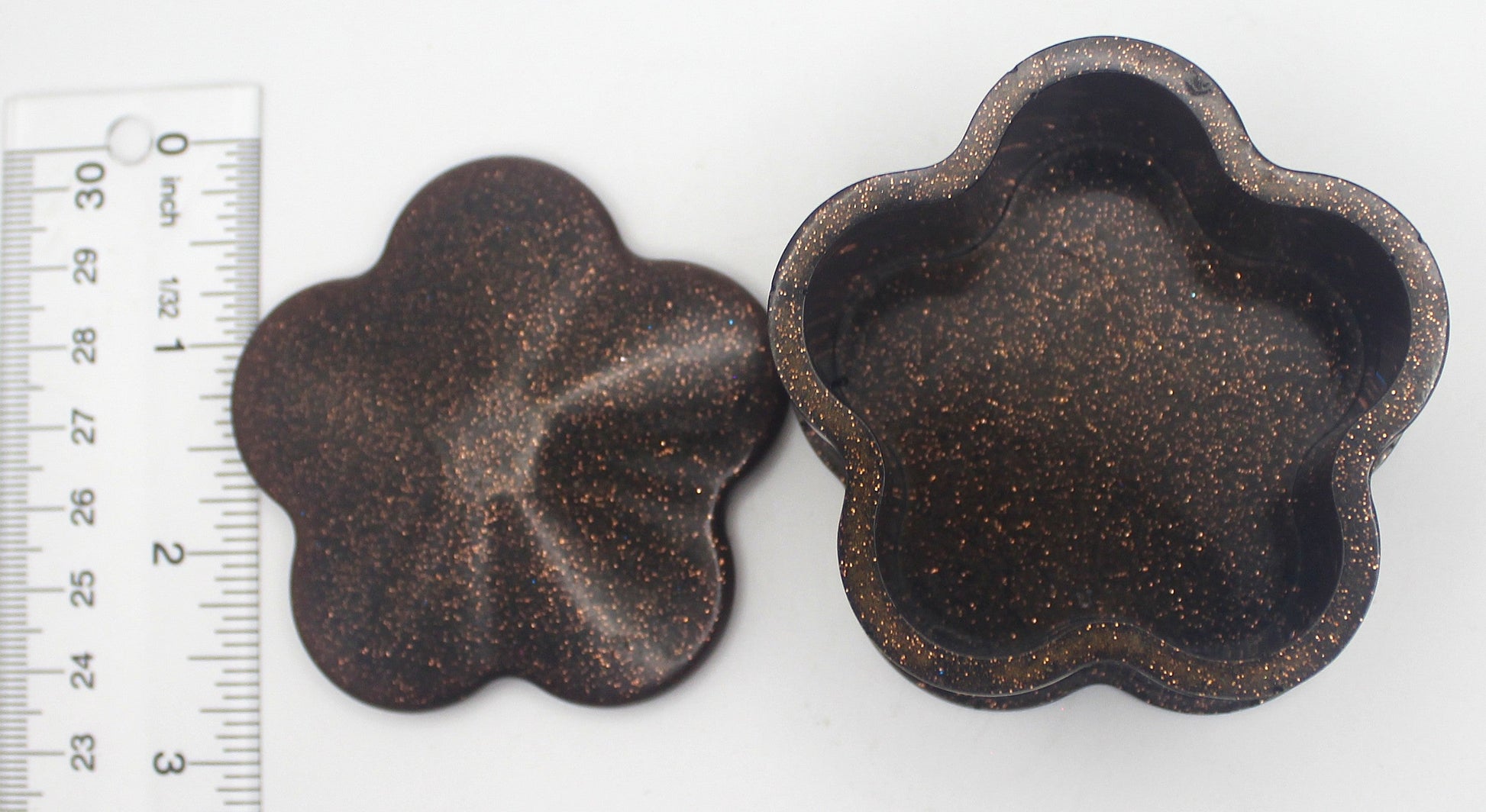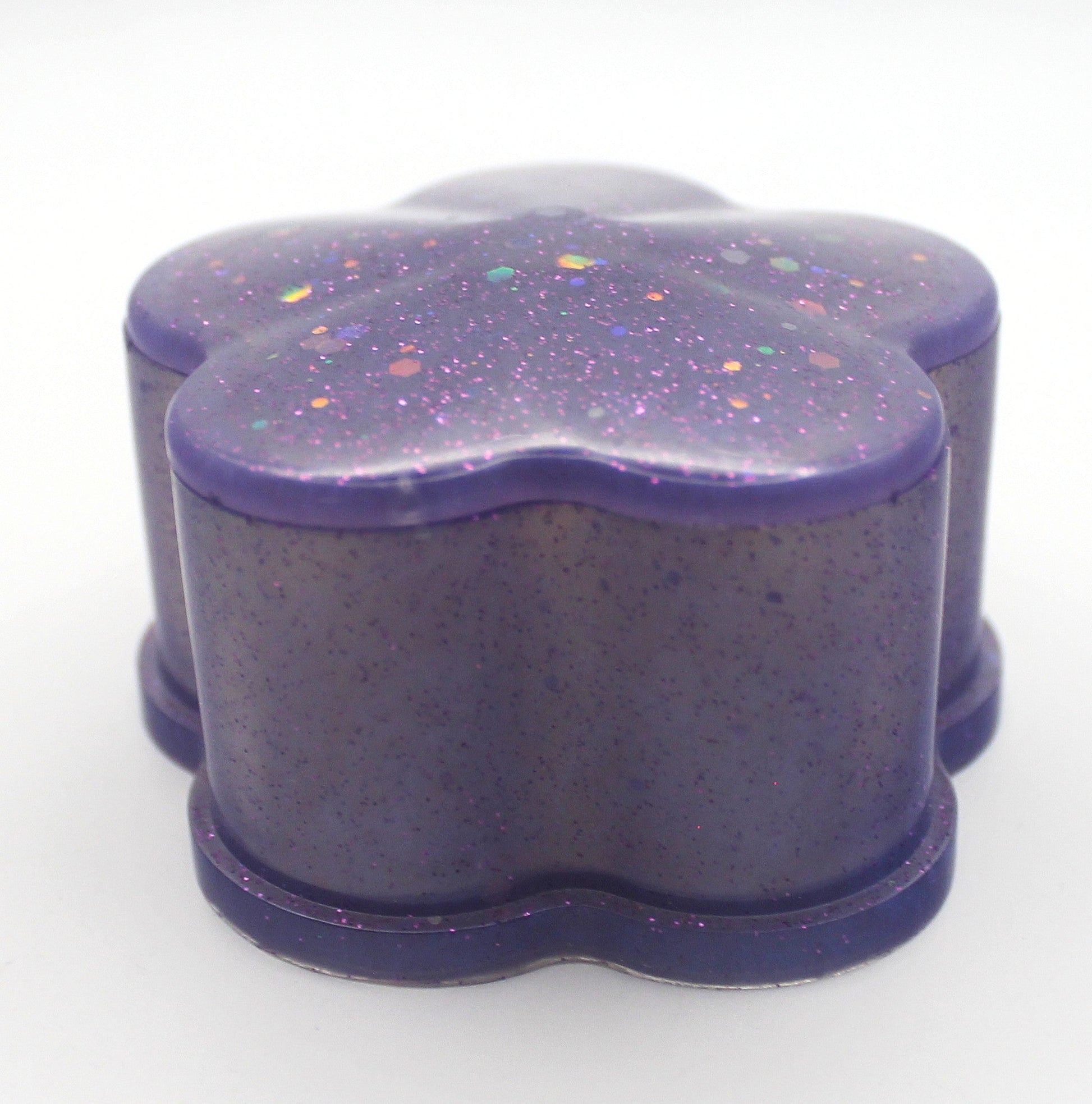 Each box is handcrafted, giving it a smooth, glossy finish and a beautifully unique shimmer throughout. The flower-shaped lid fits securely while lifting off with ease, revealing a spacious interior ideal for storing: