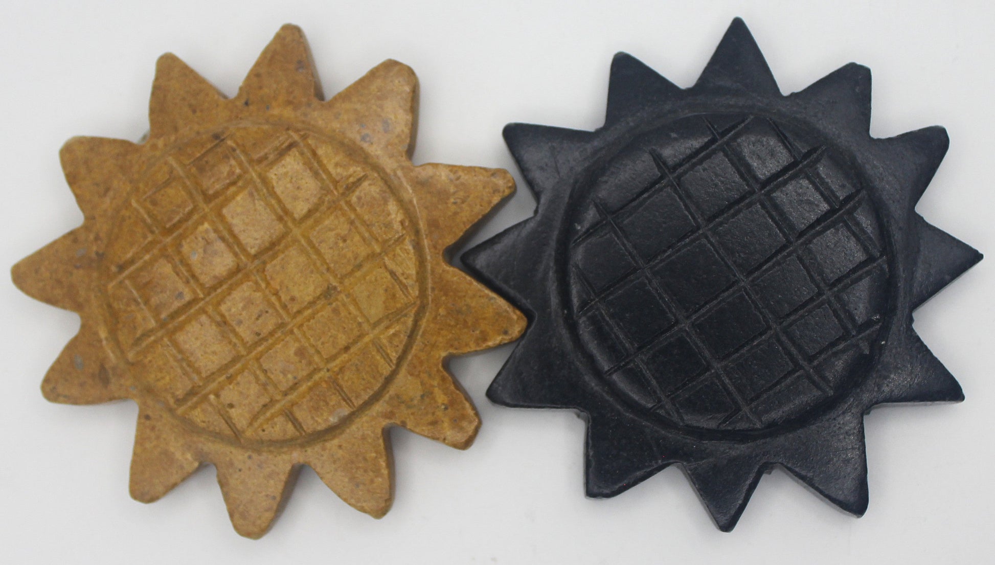 Bring warmth and grounding energy into your space with these carved stone suns, each shaped with a radiant sunburst silhouette and detailed textured center. Crafted from natural stone, every piece is unique in pattern and energy.