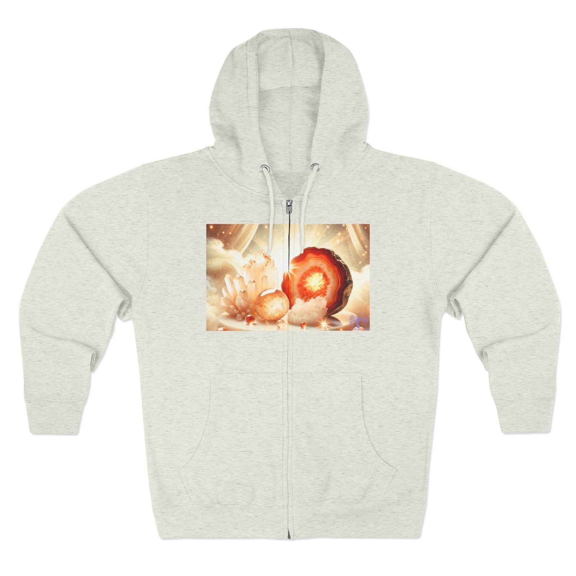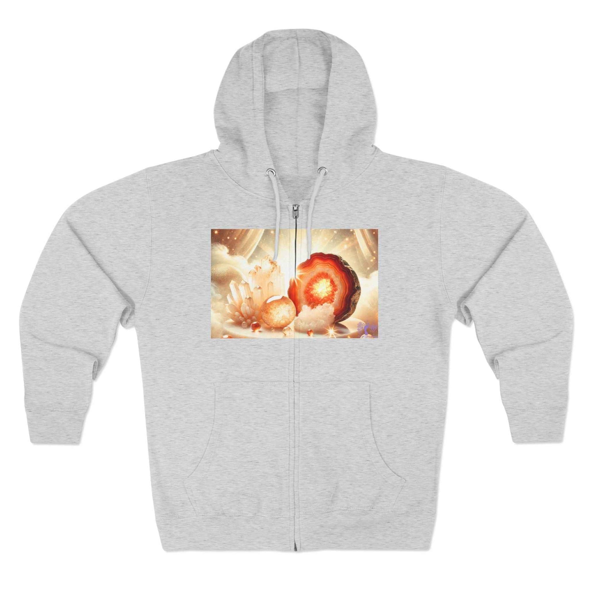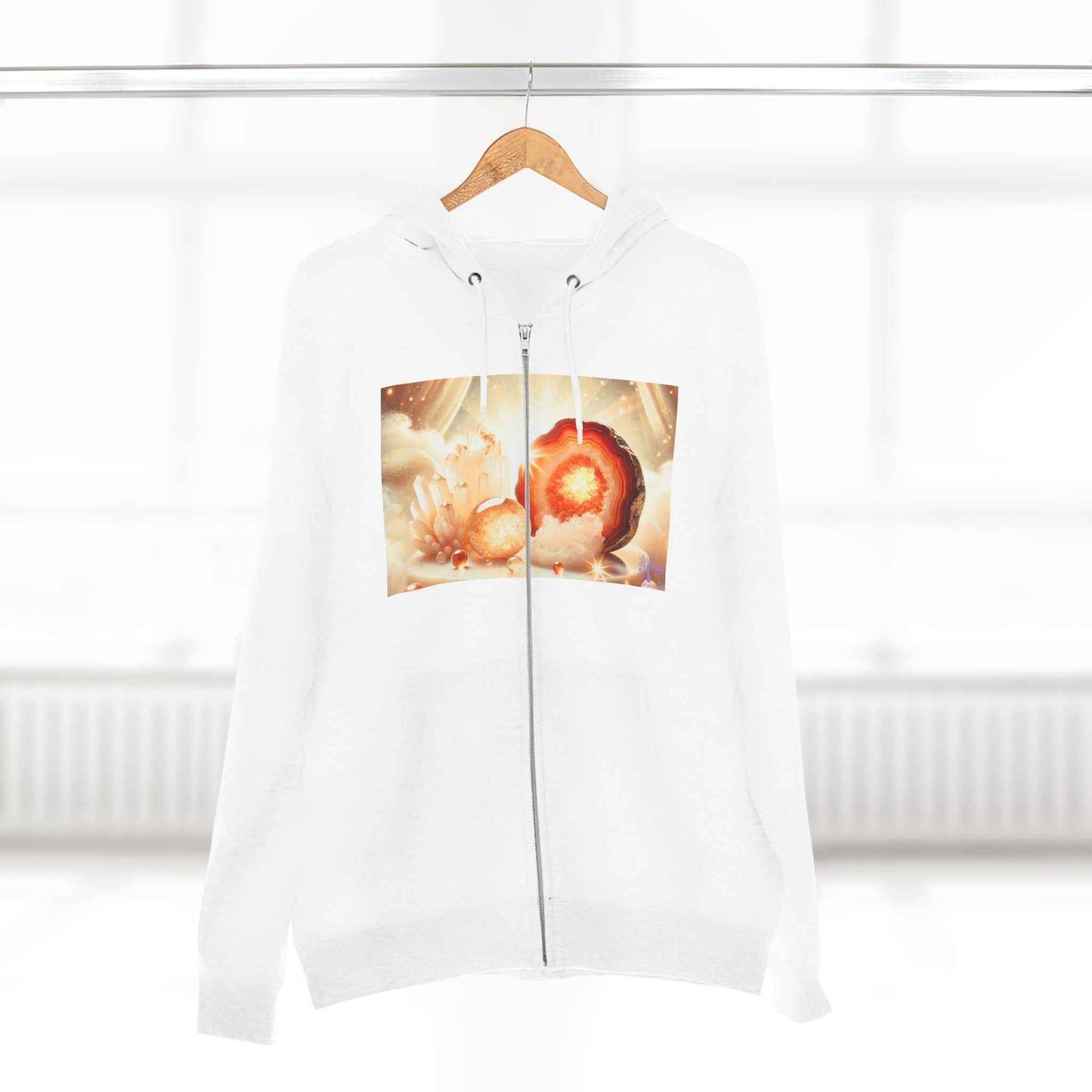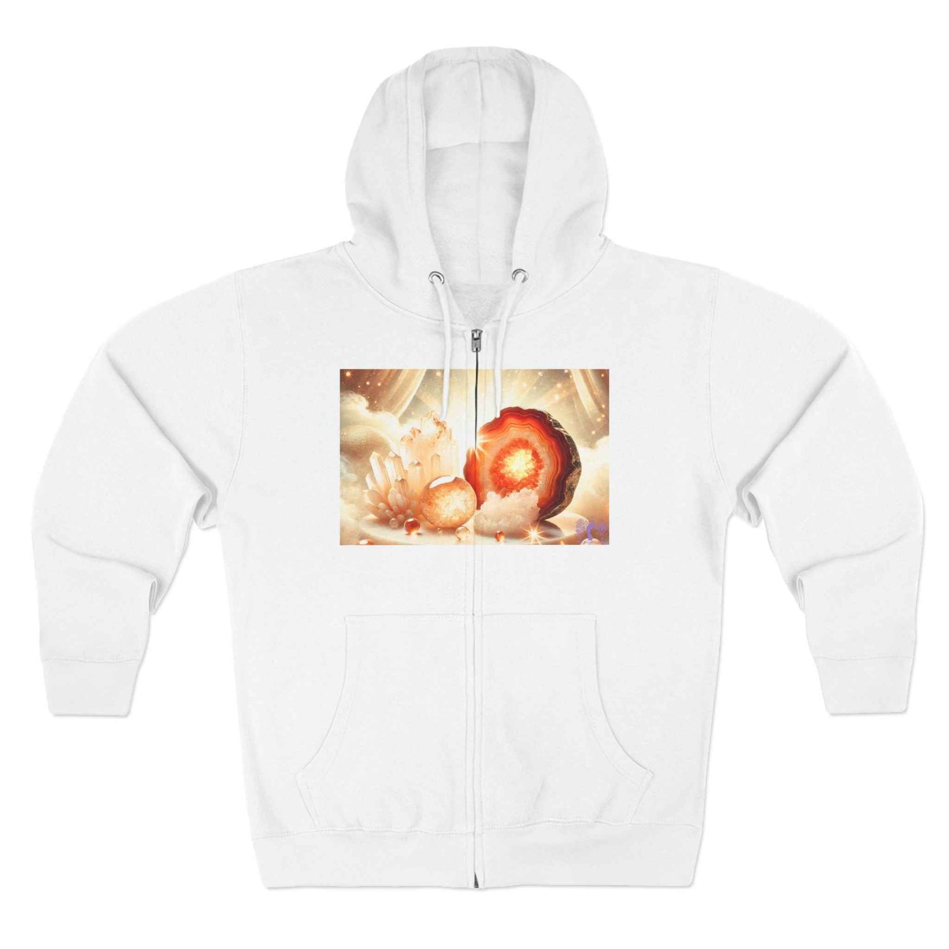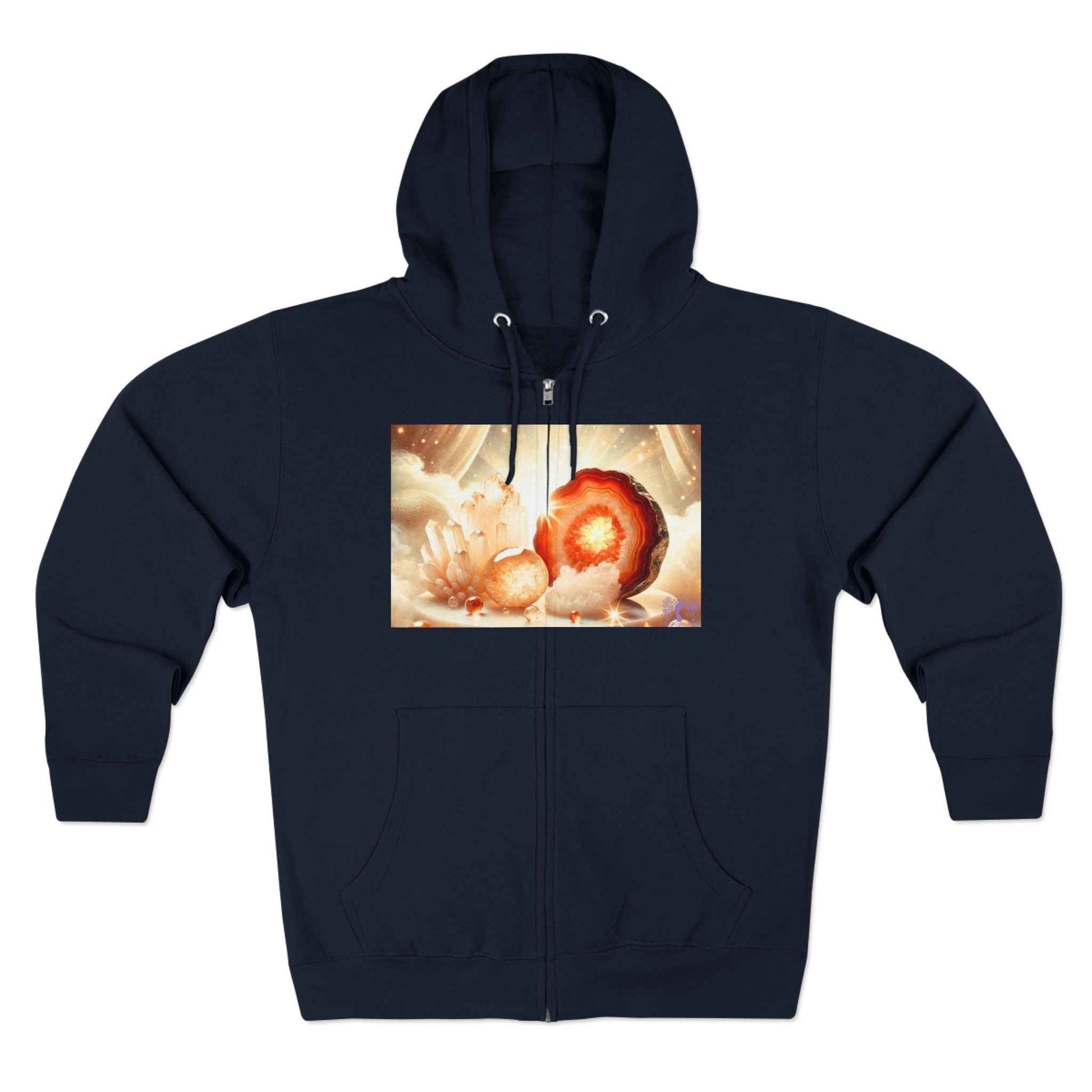 Step into the mesmerizing beauty of geodes with this Geode Zip-Up Sweater! Inspired by the raw, radiant power of nature, this design glows with bold, captivating hues, bringing warmth and energy to your everyday style.